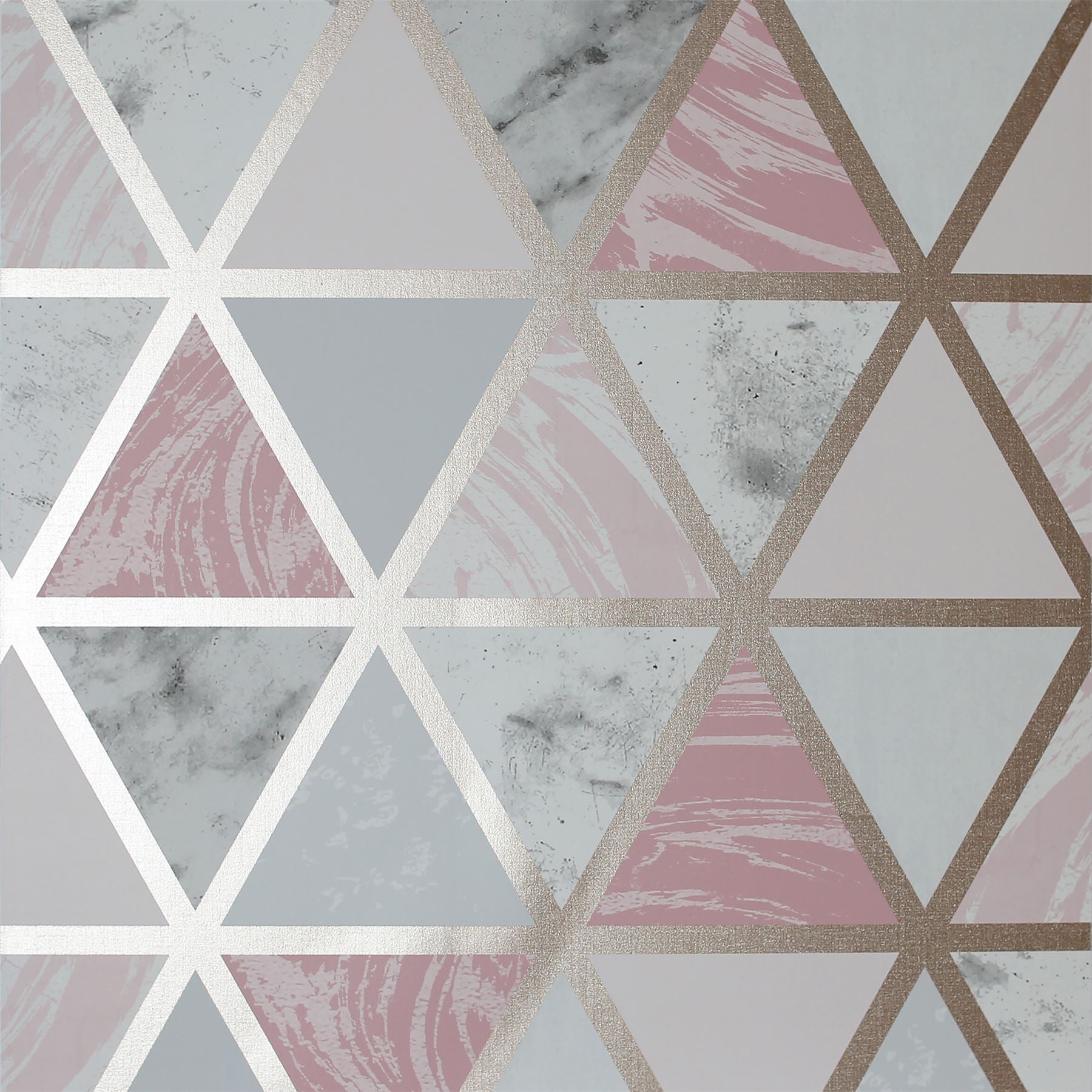 Elevate your space with the Marble Geo Pink Multi Wallpaper, a geometric design that combines various marble patterns in shades of pink and silver. This contemporary wallpaper is ideal for a feature wall in most rooms of your home. Finished with rose gold metallic highlights, it beautifully catches the light to create a striking visual effect.