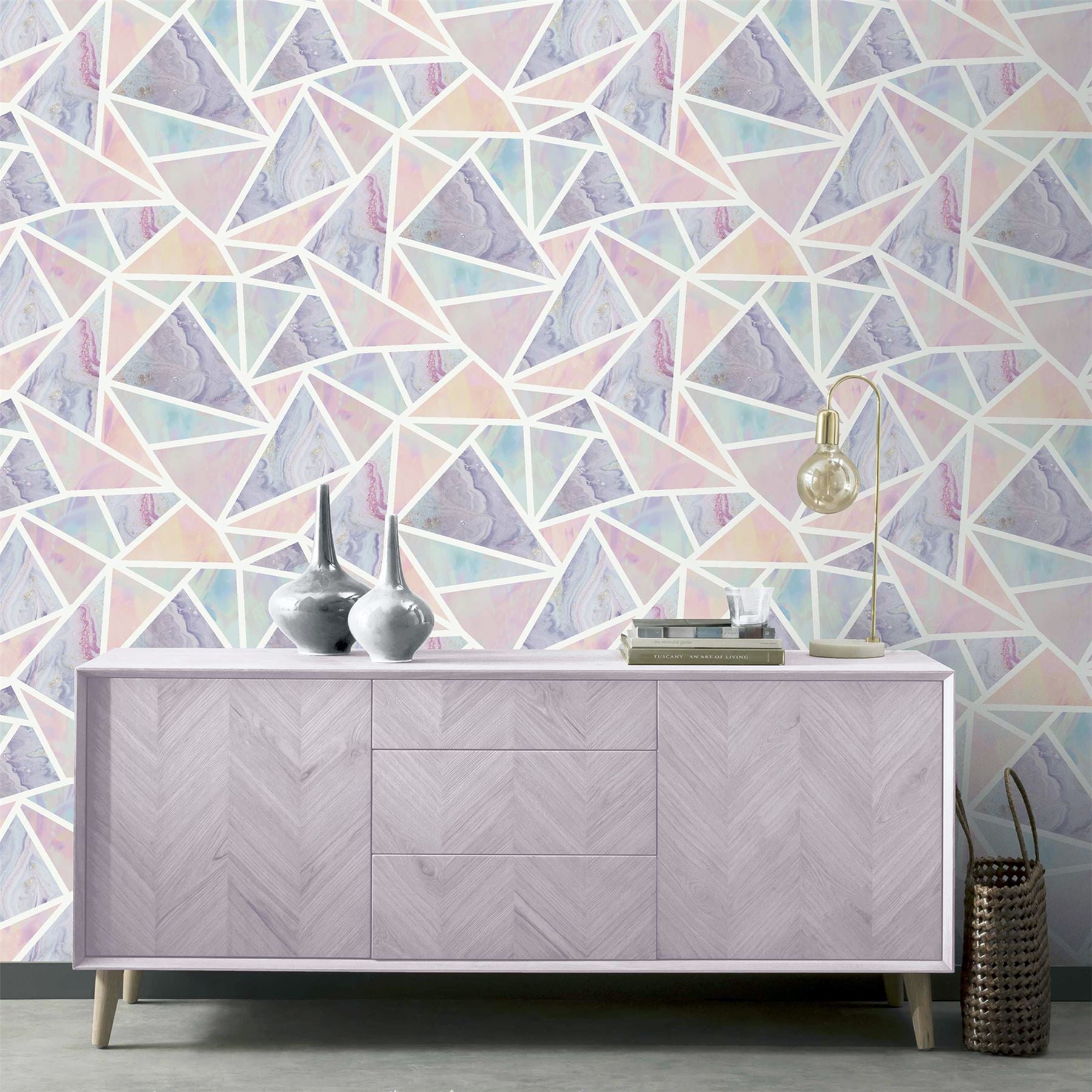 Revitalize your décor with the Pastel Geo Multi Wallpaper, a vibrant fusion of geometric marble patterns in lively shades of pink and purple wallpaper. More than just visually striking, this wallpaper serves as a brilliant conversation piece. Enhanced with glitter highlights, it captures and reflects light, infusing any room with a sense of glamour and sophistication. Featuring a bold geometric tile print, this design merges retro influences with a contemporary flair. Whether you're looking to create a dramatic feature wall or envelop an entire room, this pastel wallpaper offers unmatched versatility and style. Ideal for brightening up your living space, bedroom, or hallway, the Pastel Geo Multi Wallpaper is a chic and elegant choice that effortlessly elevates your home's aesthetic.