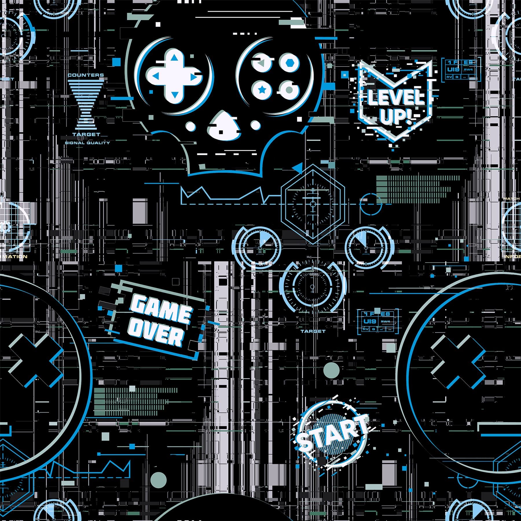 Featuring matrix-style graphics in navy and white on a charcoal background, the Gaming Glitch Charcoal/Blue wallpaper is perfect for any gamer in your home. It brings a gamer's imagination to life with video game graphics and glitchy neon designs, creating a dynamic and modern look. Ideal for boys' rooms, playrooms, dens, or offices, this wallpaper adds a tech-inspired vibe to any space. The Gaming Glitch Charcoal/Blue design is versatile enough for a feature wall or covering all four walls, making it a stylish choice for a dedicated gaming area.