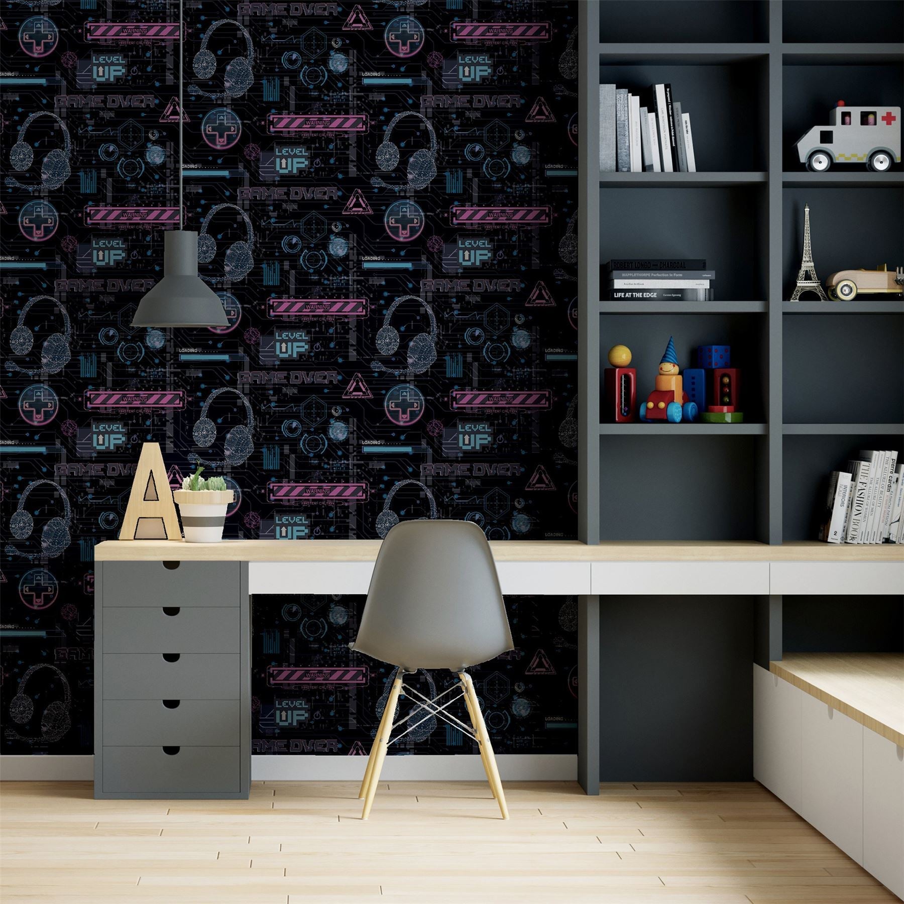 Bring a gamers imagination to life with this Gamer Multicoloured video glitch wallpaper. This design features gamer style graphics and neon style signs in multiple colours throughout. This wallpaper is perfect for any gamer in your home and has a matrix inspired vibe to it. Perfect for boy's rooms, play rooms, dens or even offices.